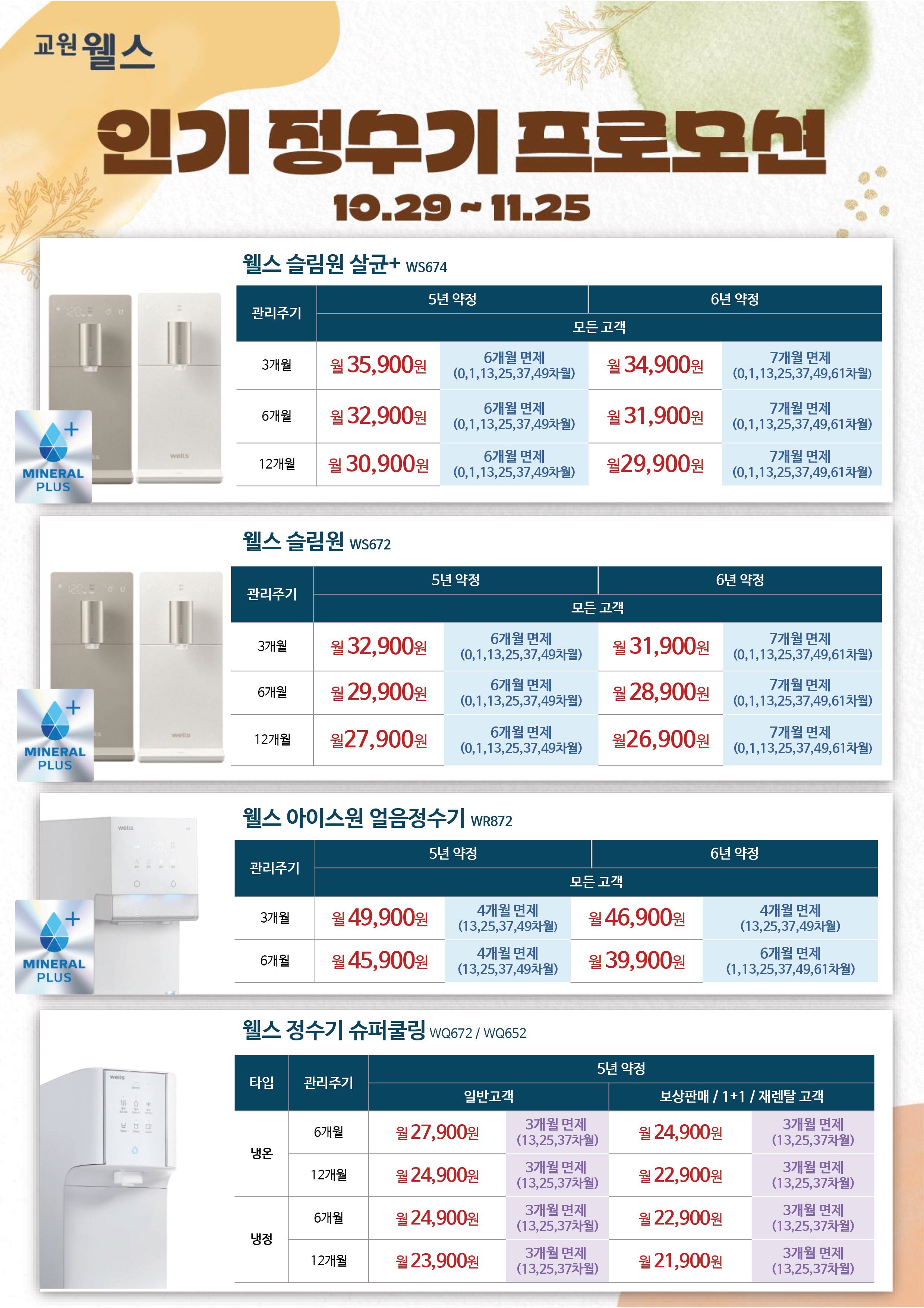 웰스 아이스원 얼음정수기 랜탈료 월 49,900원