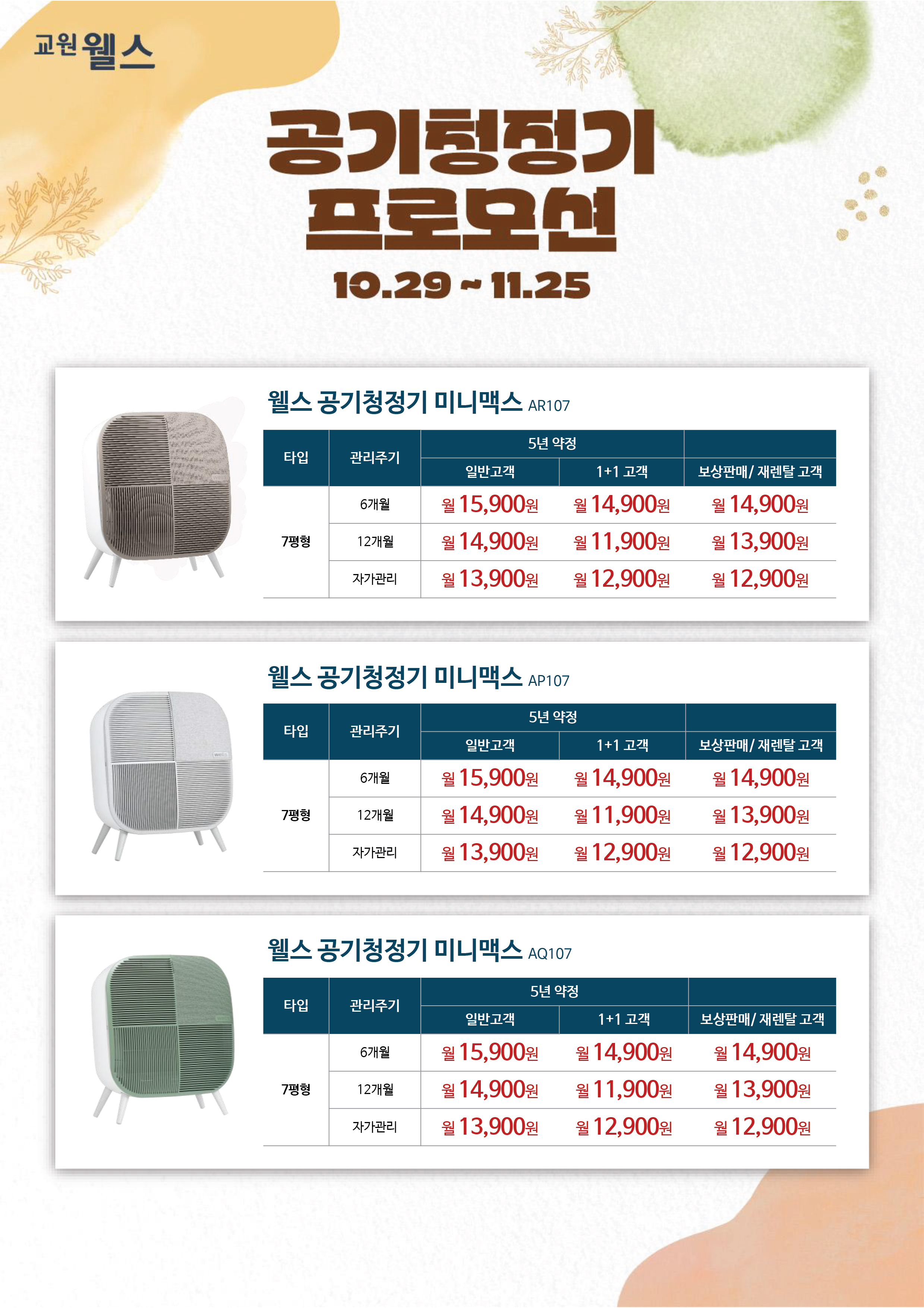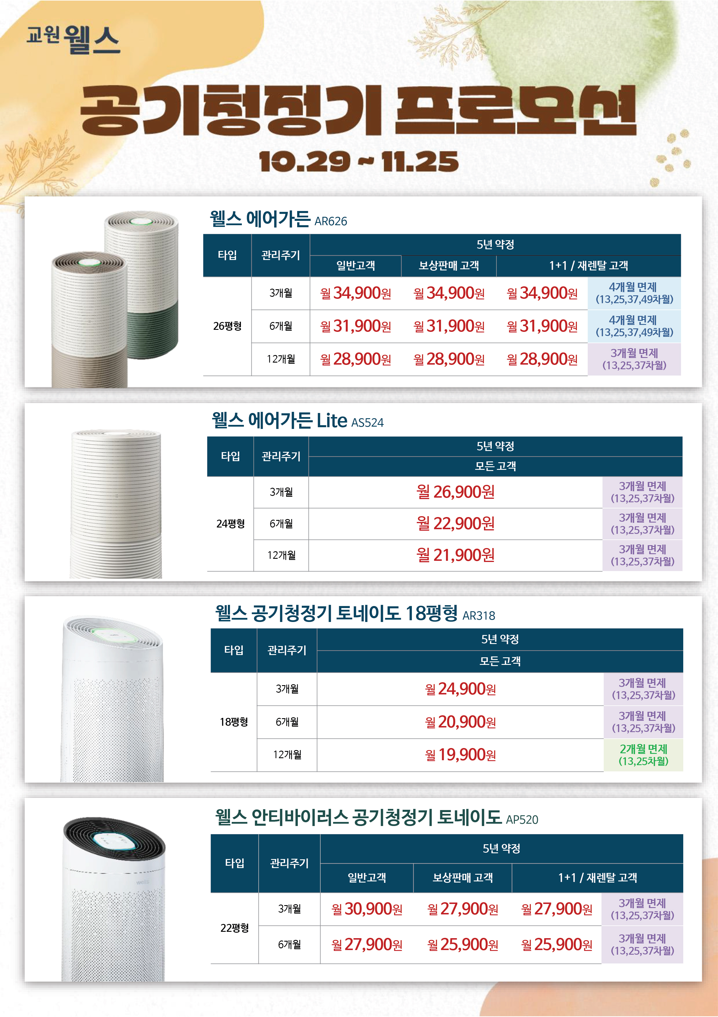 웰스 에어가든 공기청정기 랜탈료 월 34,900원
