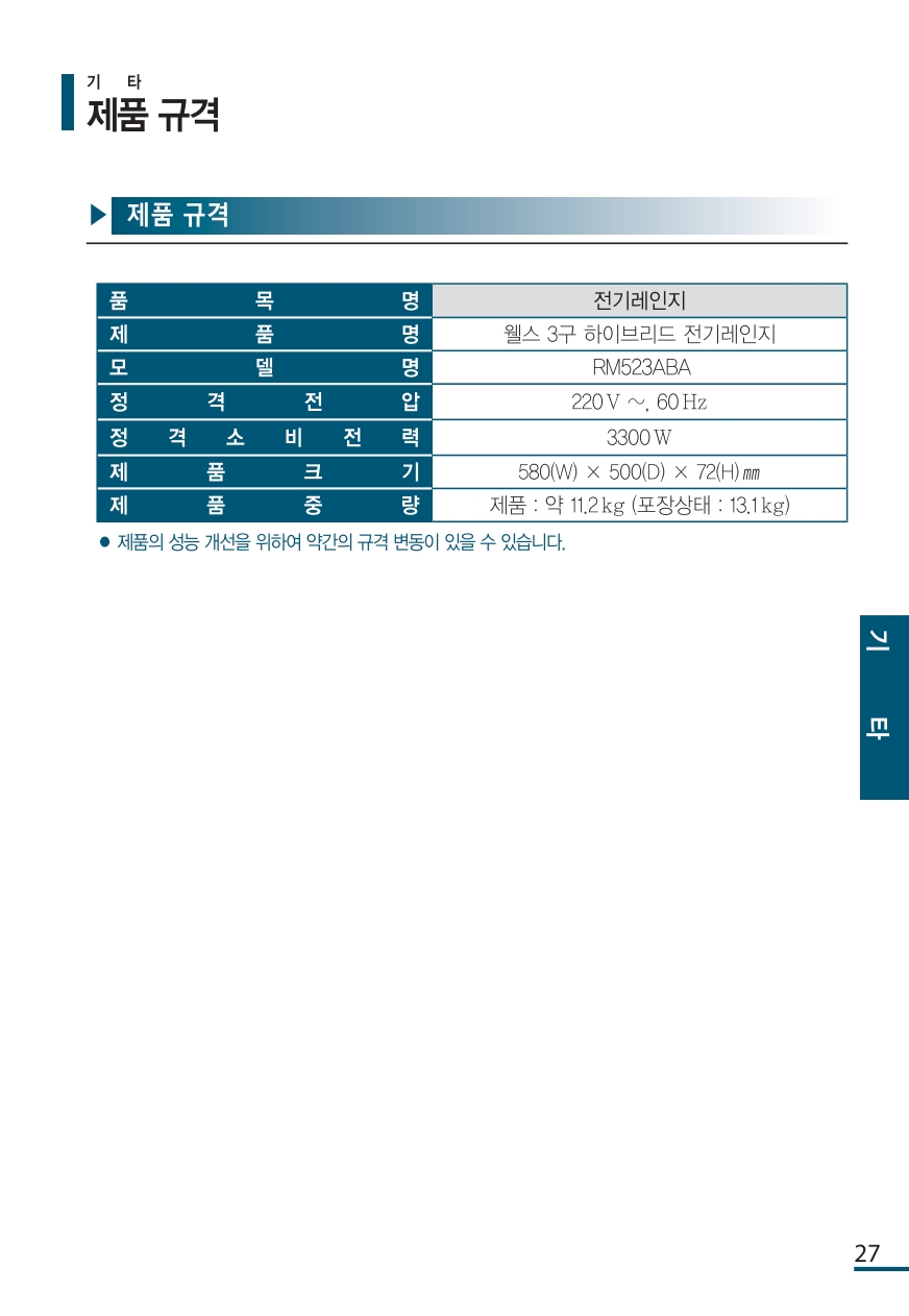 웰스 전기레인지 3구 하이브리드 (RM523)