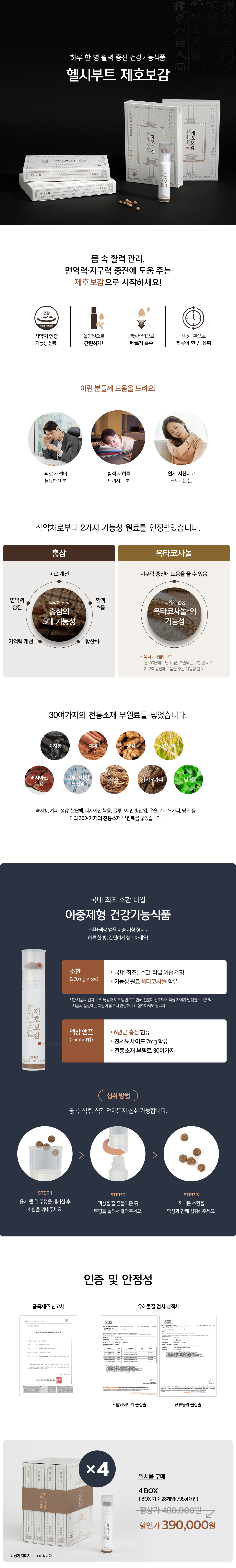 식물혼합농축액2, 생강추출분말, 녹용발효추출분말, 초록입홍합동결건조분말, 쌀단백분말, 히알루론산, 치커리뿌리추출물,
