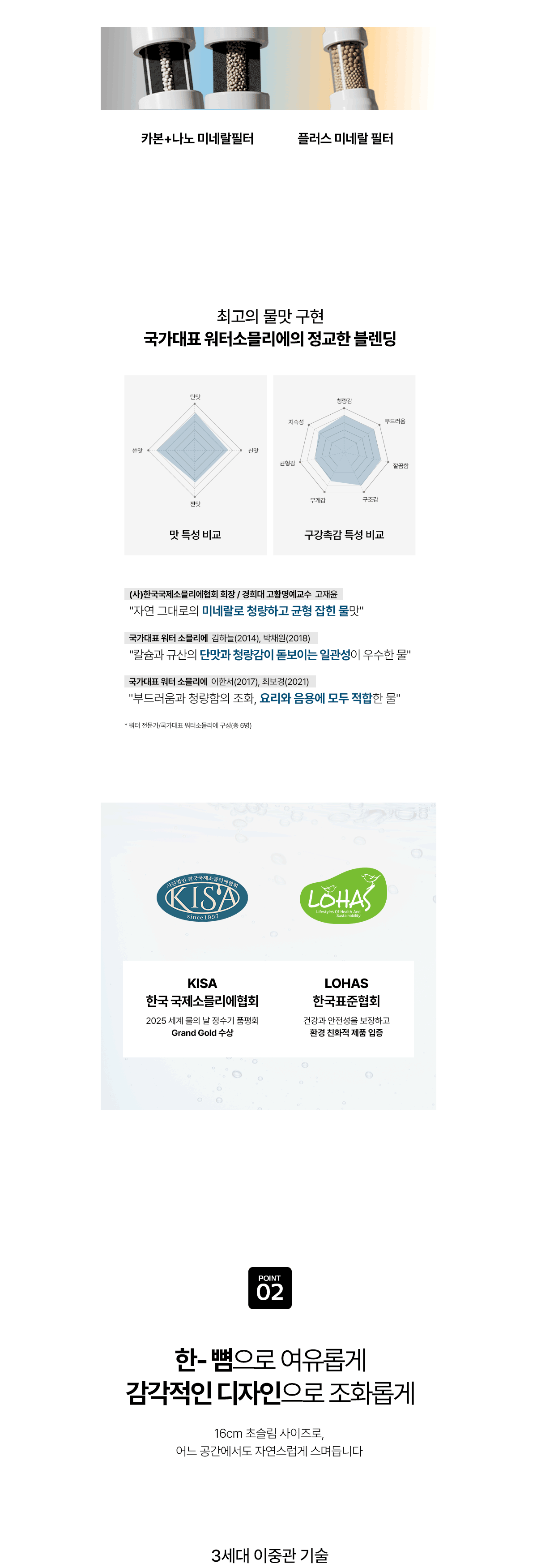 미네랄 케어 시스템 / 콤팩트사이즈 / 끊김없고 튐 없는 고온수