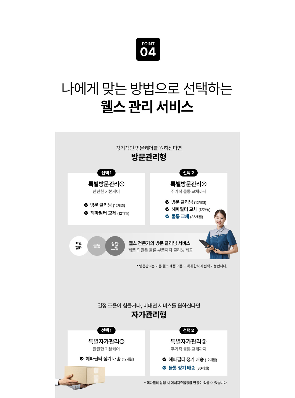 - 불량 제품일 경우 : 전 구성품 분실 없이 포장, 웰스 고객센터(1588-4113) 또는 마이페이지 1:1 문의에서 요청