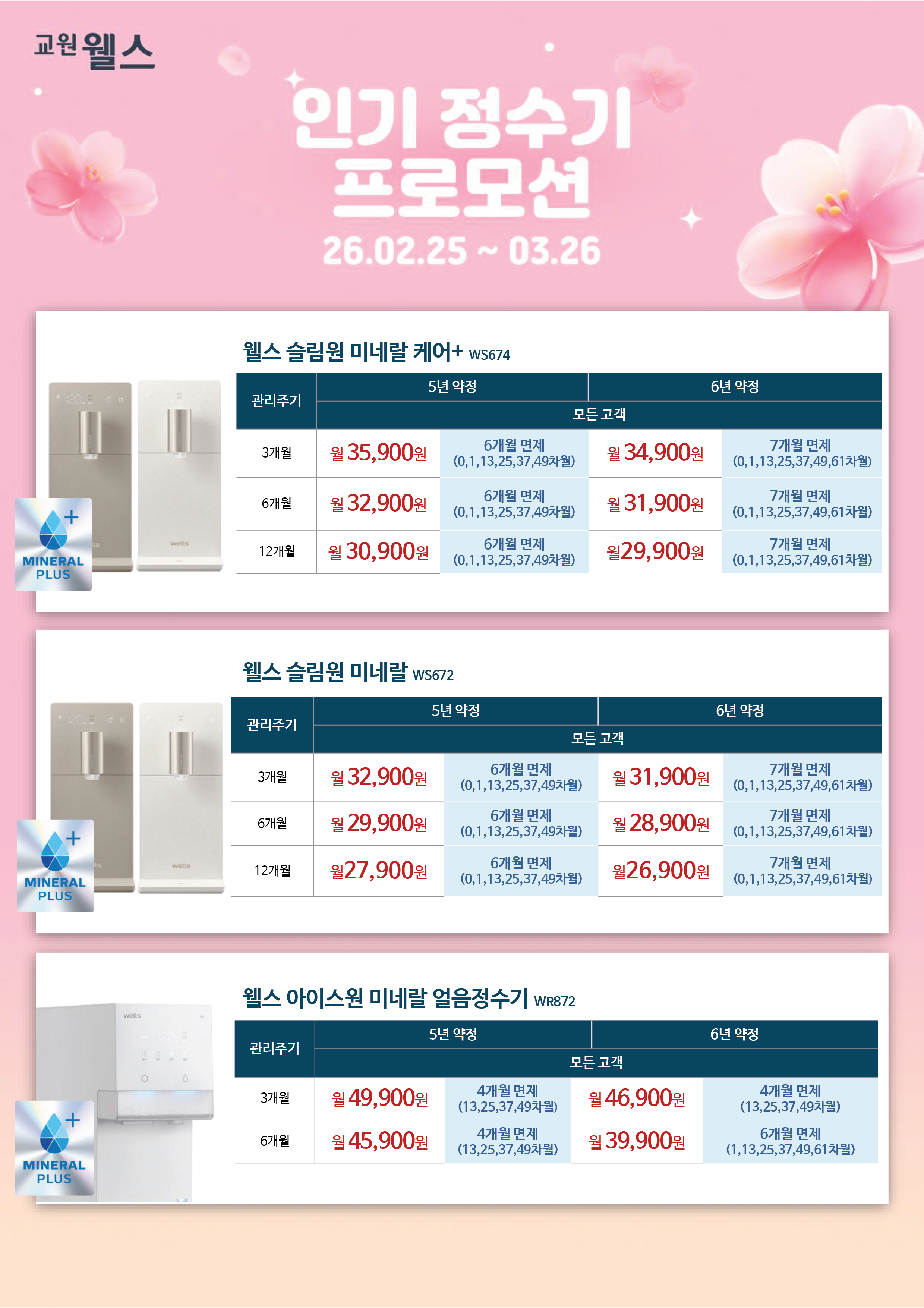아이스원 미네랄 얼음정수기 랜탈료 월 39,900원