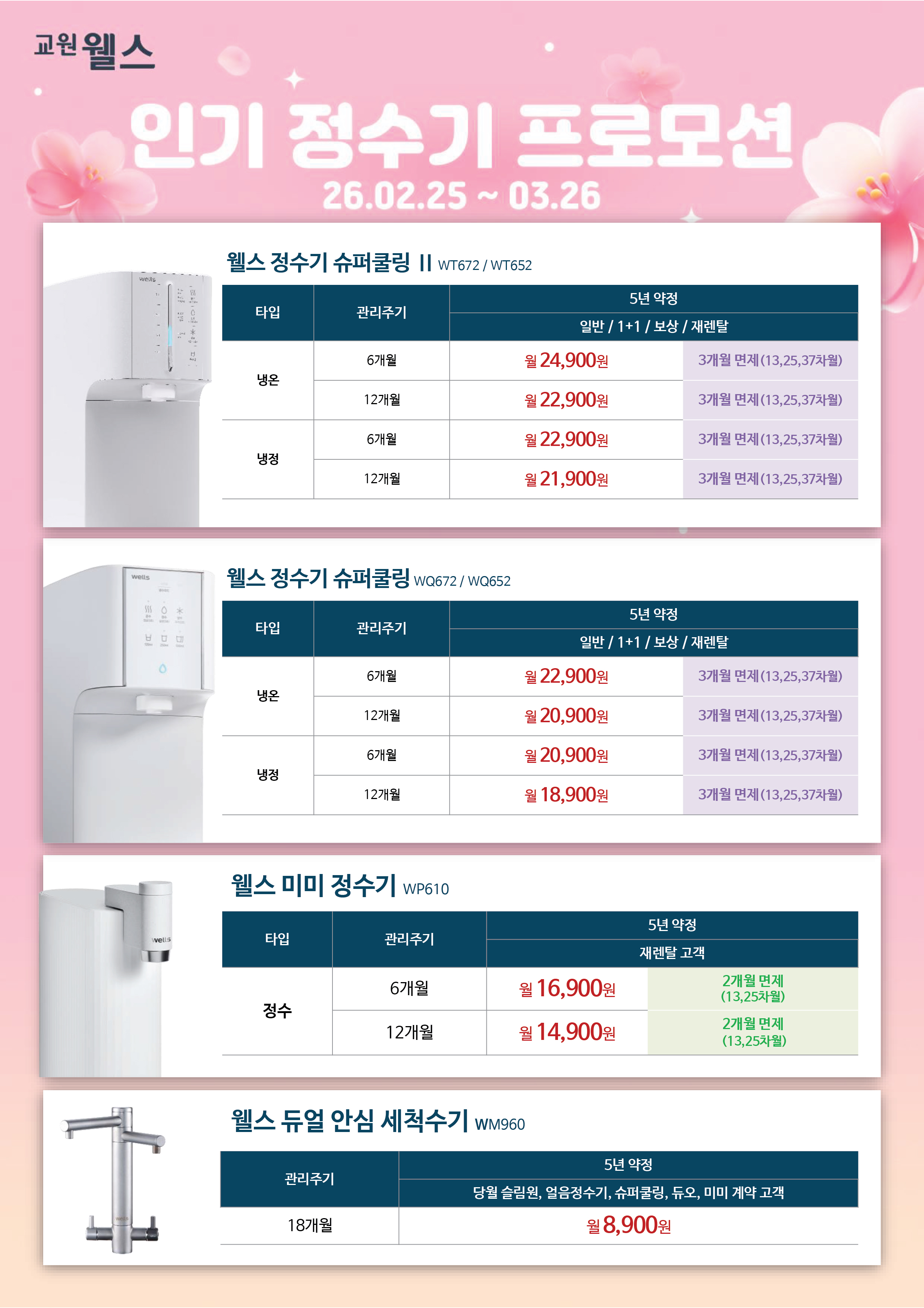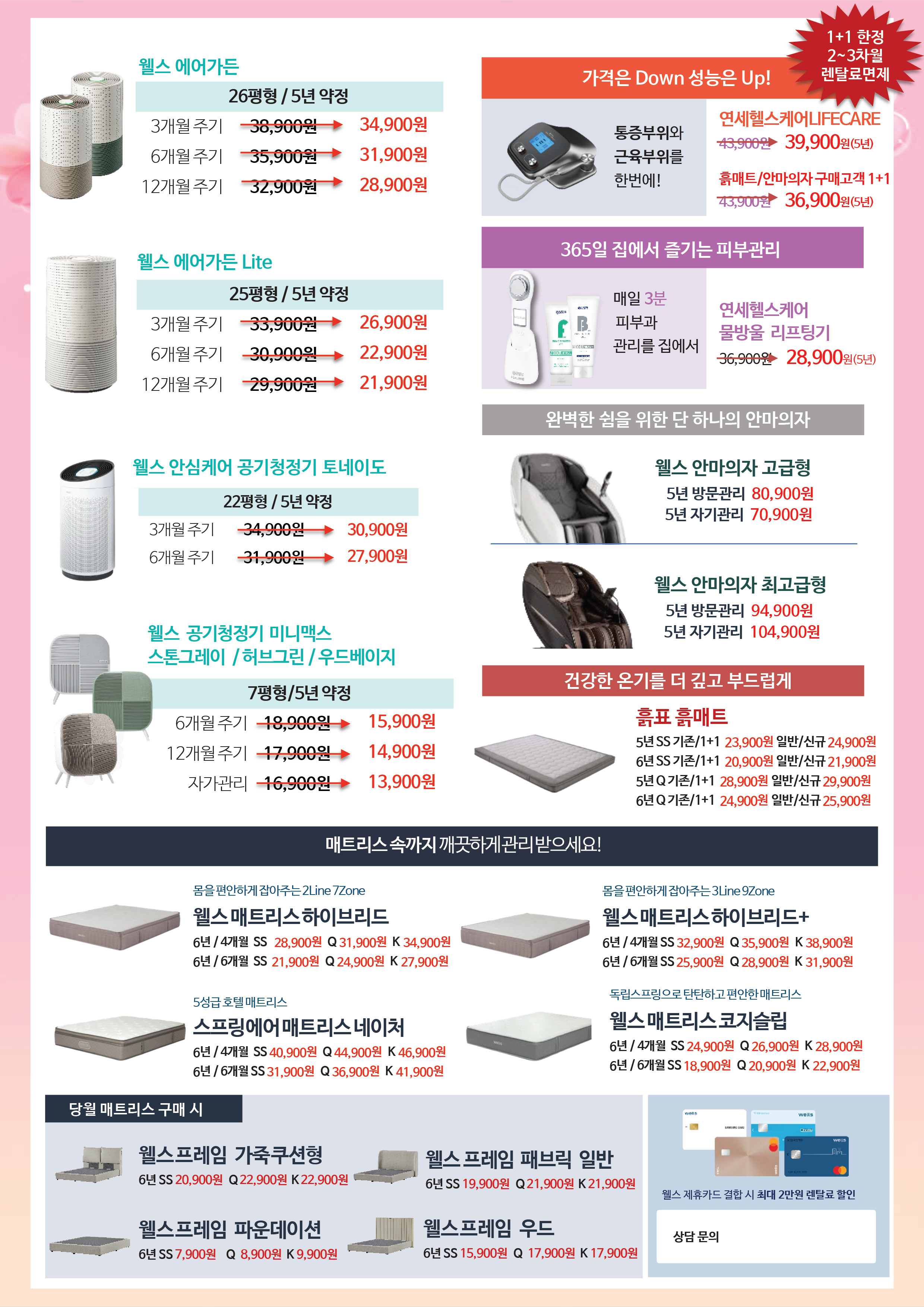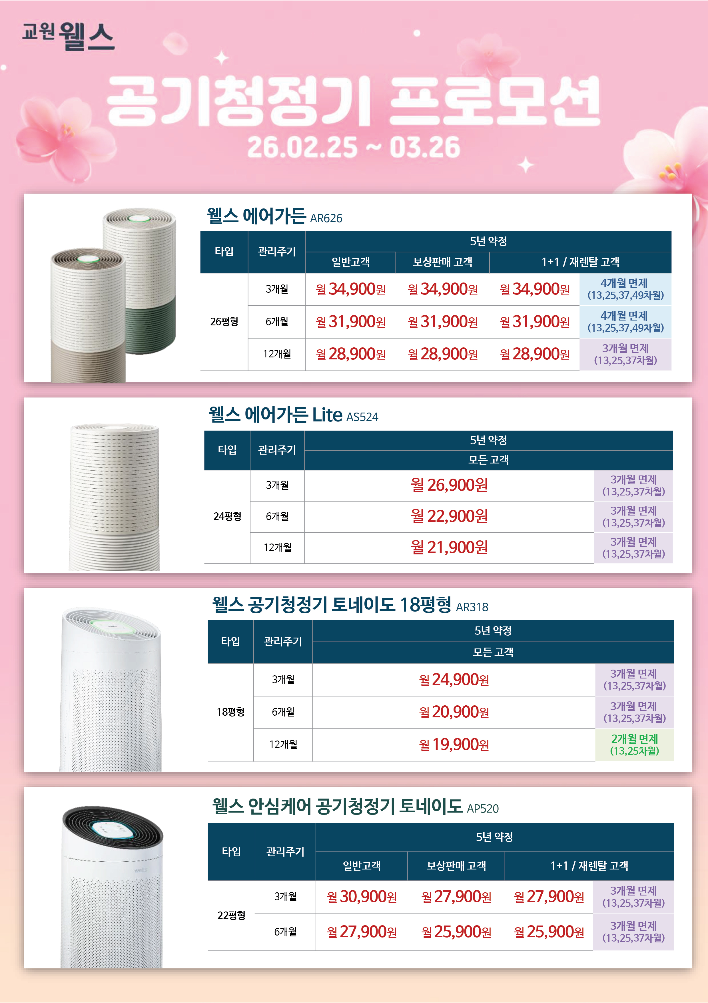 웰스 에어가든 공기청정기 랜탈료 월 34,900원