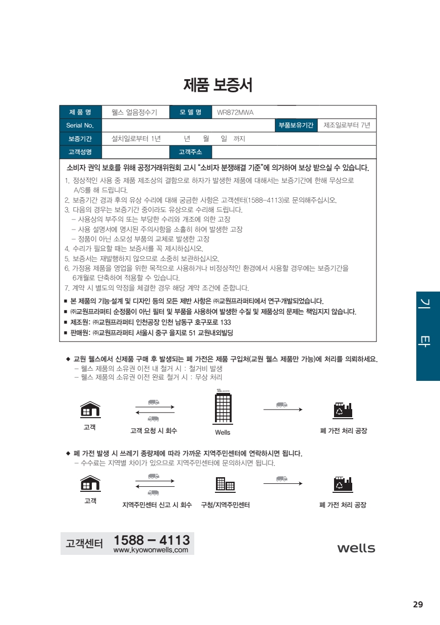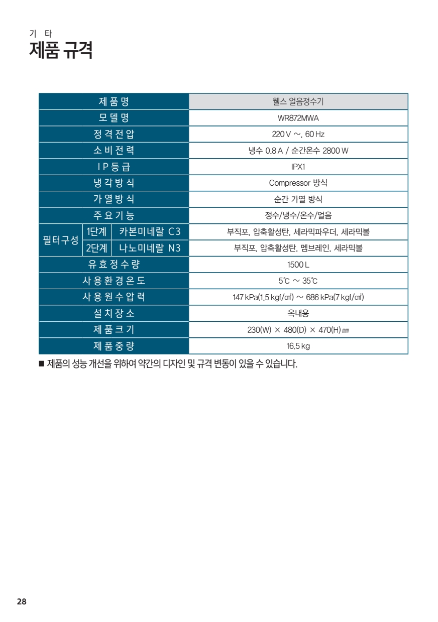 웰스 아이스원 얼음정수기(WR872)