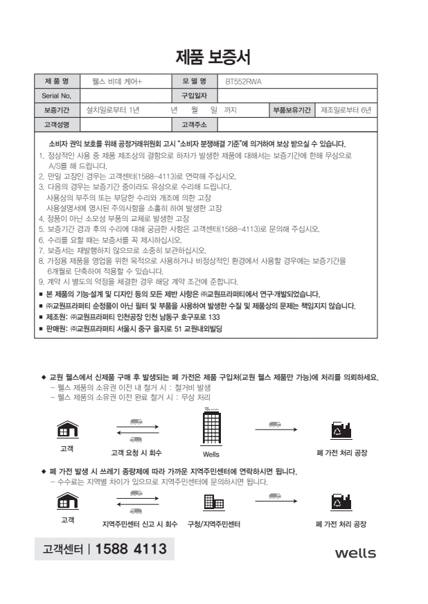 웰스 에어가든 공기청정기 랜탈료 월 34,900원