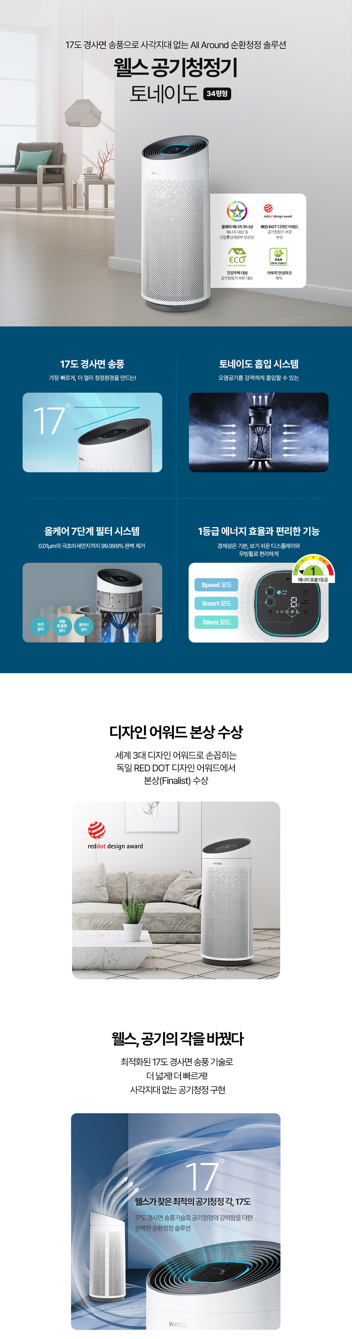웰스 공기청정기 토네이도 34평형