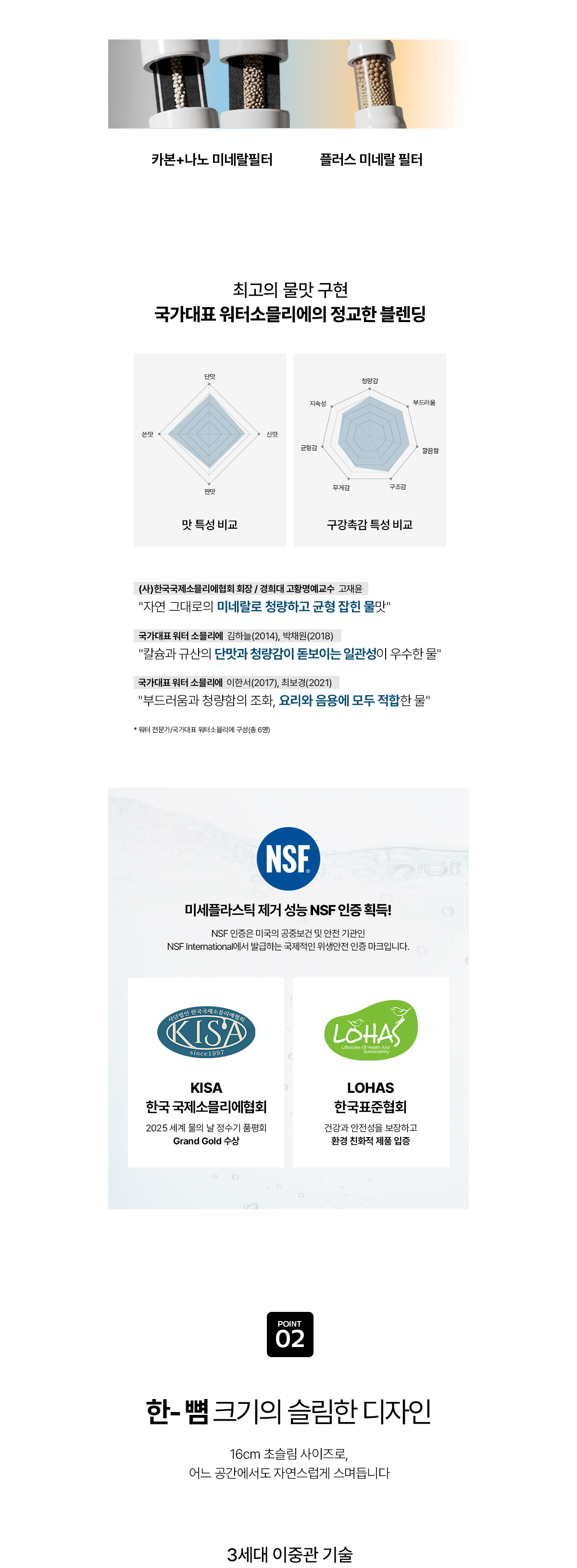 미네랄 케어 시스템 / 콤팩트사이즈 / 끊김없고 튐 없는 고온수
